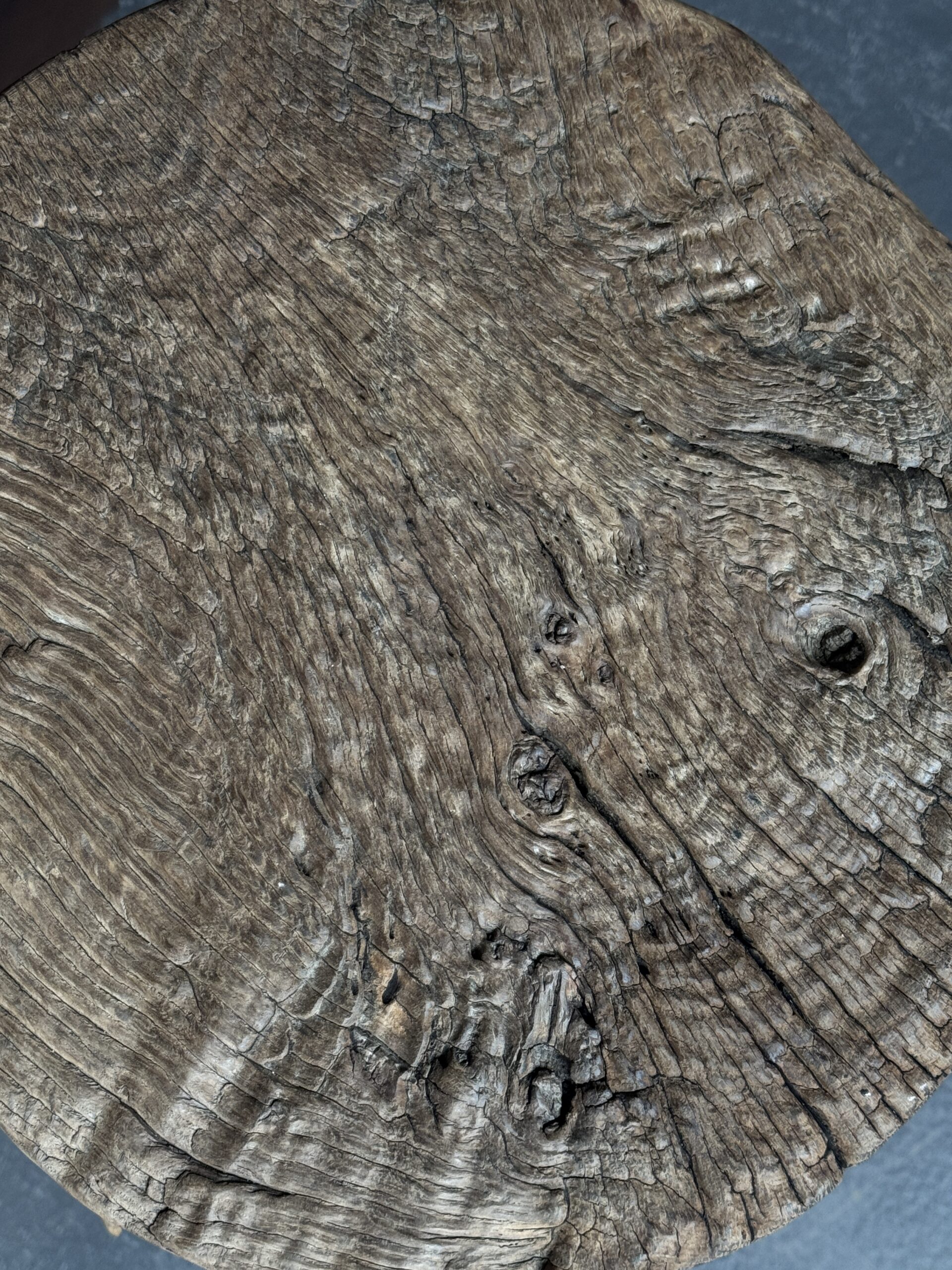 Bovenop ligt een blad van oud eiken, door de jaren heen doordrenkt met karakter. De houtnerf vertelt verhalen van lang vervlogen tijden.