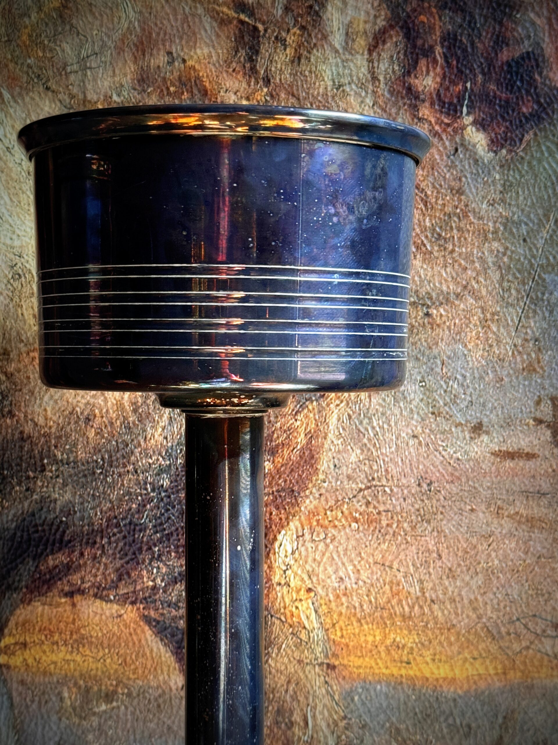 In de jaren 1950 was de verzilverde koeler een populair en elegant item om drankjes koel te houden tijdens chique diners en feesten. Met zijn glanzende zilveren afwerking voegde deze koeler een vleugje luxe toe aan elke tafelsetting, en werd vaak gebruikt om flessen wijn of champagne te presenteren. Het was een symbool van klasse en verfijning in die tijd.